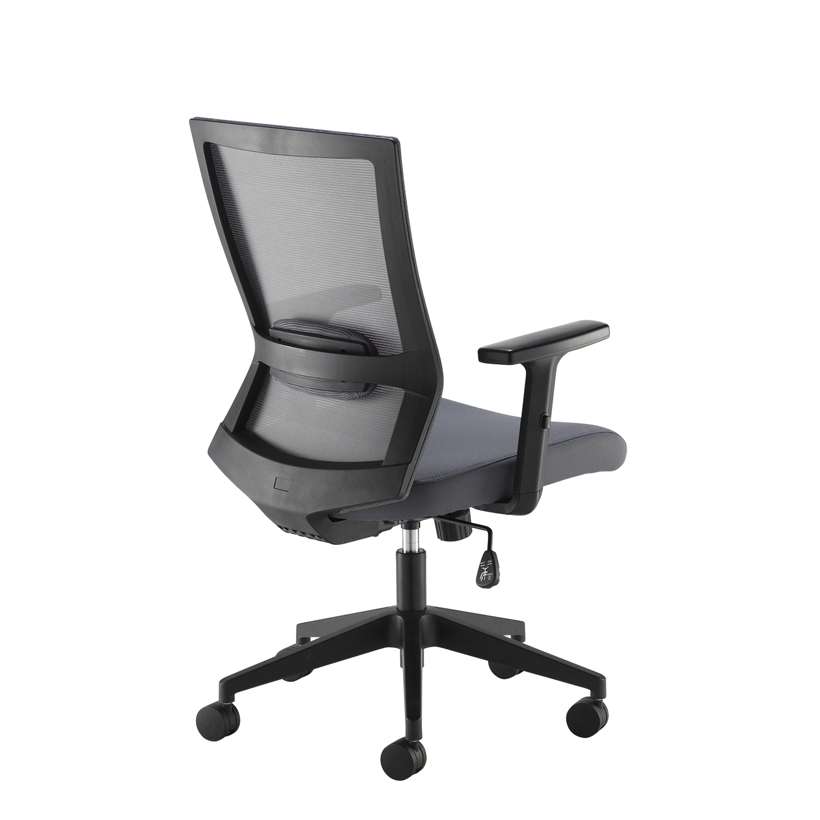 Travis grey mesh back operator chair with grey fabric seat and black base
